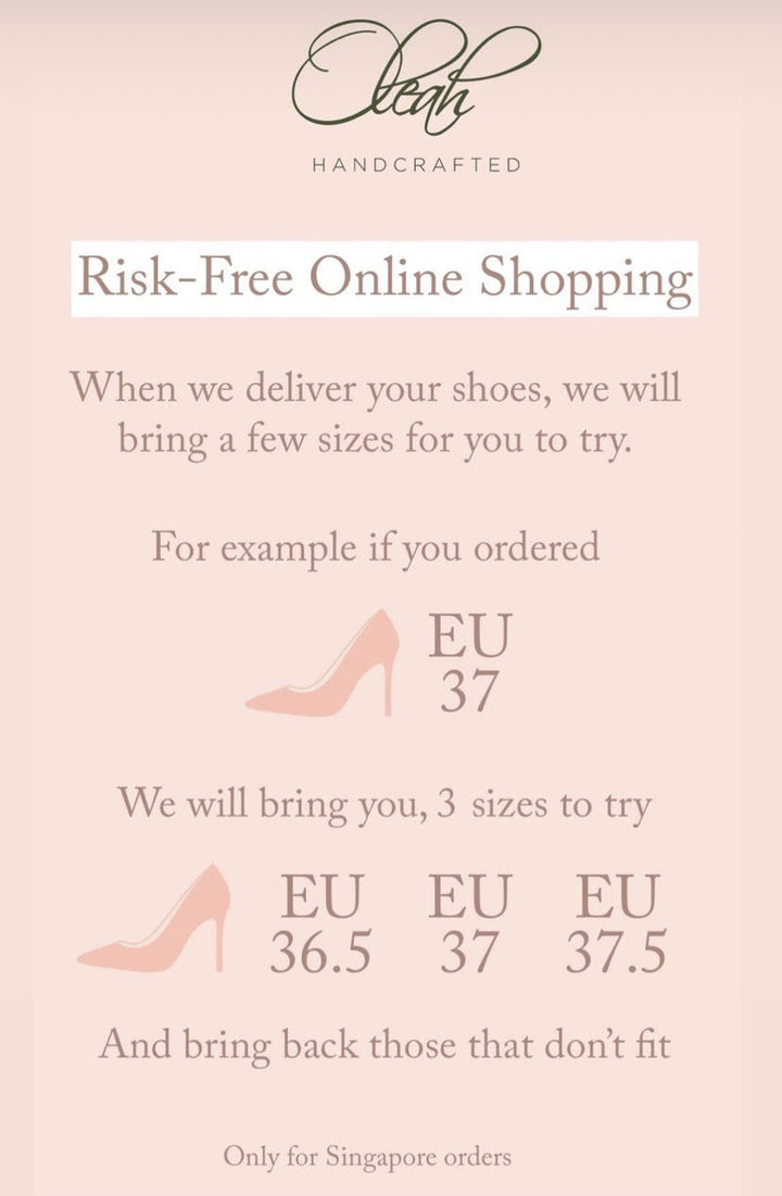 Kasut kami direka di Singapura, buatan tangan di Sepanyol mengikut saiz Eropah dan direka bentuk untuk keselesaan sepanjang hari dan kesesuaian yang disesuaikan. Walaupun kasut kami sesuai dengan panjang, kami menggalakkan semua orang menyemak semula saiznya kerana skala saiz boleh berbeza-beza dari satu pengeluar ke pengeluar yang lain.